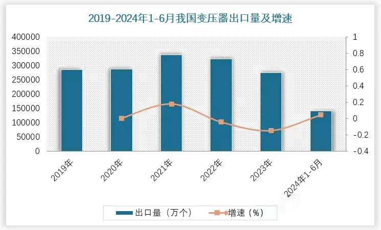 據(jù)統(tǒng)計,2019-2023年我國變壓器出口量均超25億個,其中2021年、2022年變壓器出口量均突破30億個,2024年上半年已達(dá)14億個,較2023年同期增長4.3%。